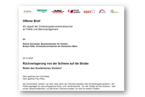 Against the backdrop of the particularly precarious situation in our industry, we have joined forces with other intermodal providers and associations to send an open letter to the Federal Minister of Transport, Patrick Schnieder, and the new CEO of Deutsche Bahn, Evelyn Palla.